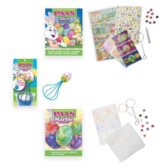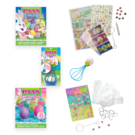 Deluxe and Tie Dye Egg Decorating Kits with Whiskers Tool - 3 Piece Bundle