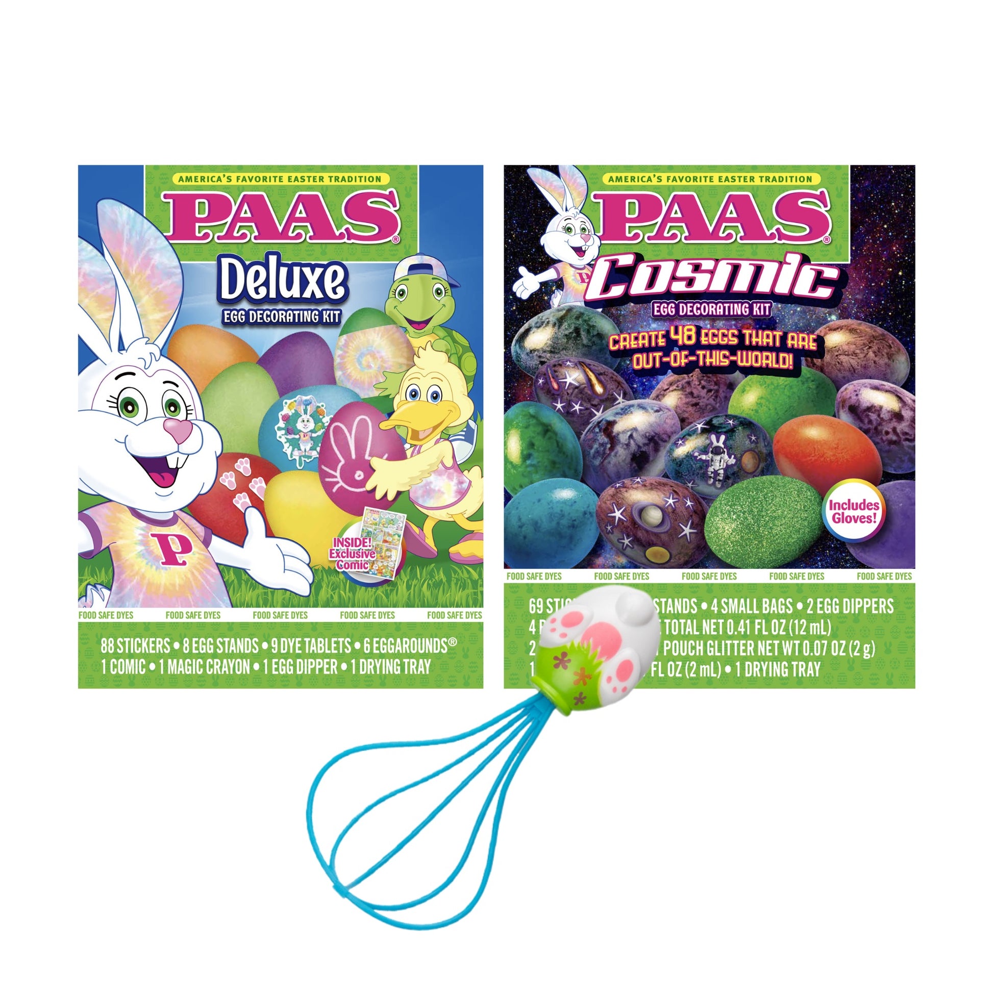 - Deluxe Egg Decorating Kit: Dye up to 24 eggs in a variety of rich colors with 9 different dye tablets. Use stickers, egg stands, and the PAAS® Magic Crayon to add fun details and creative designs.